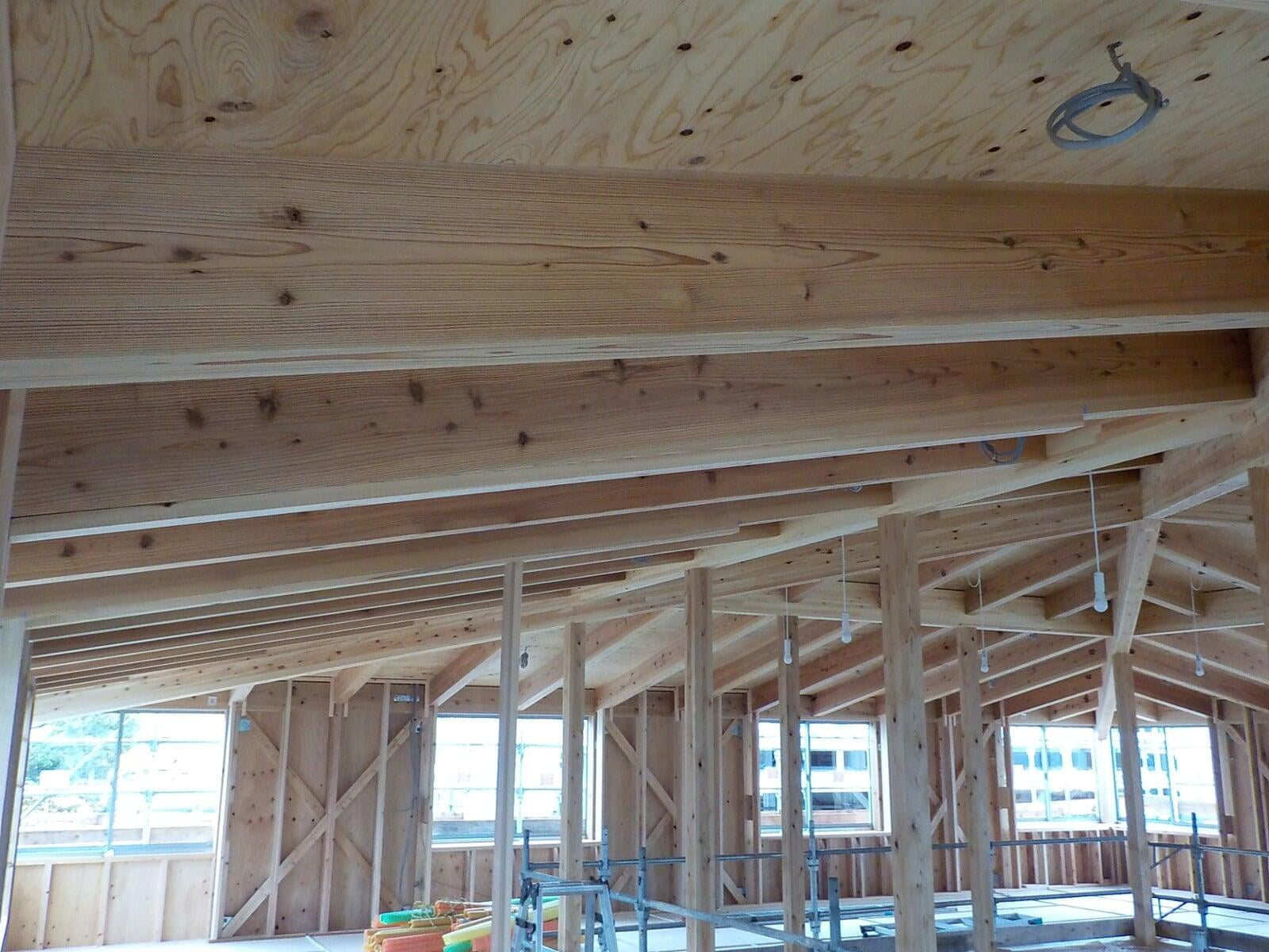 掛川市横須賀地内のこども園用にスギ材を納めました。(梁桁が掛川市産材)